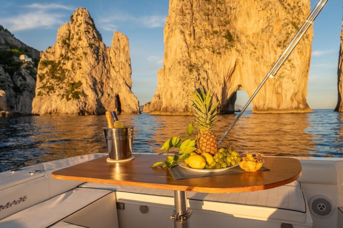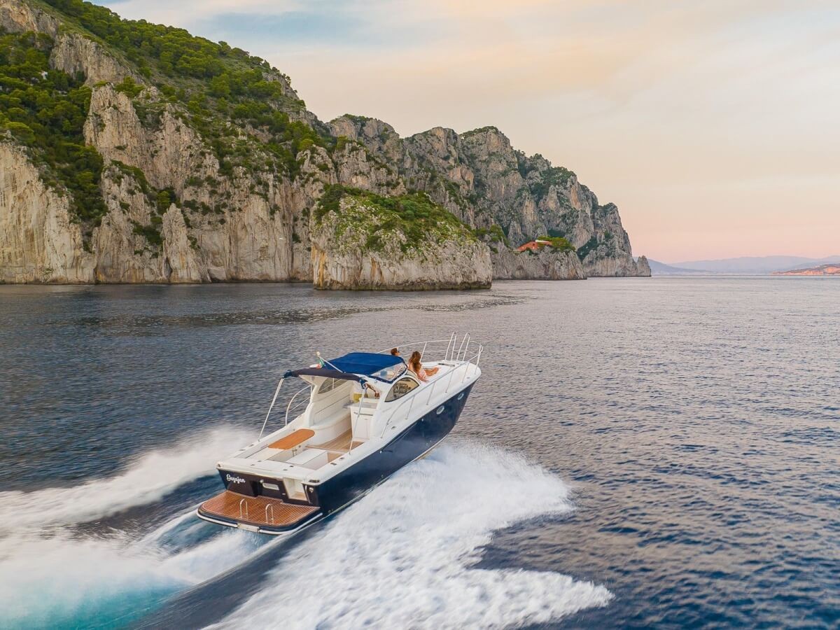 The BMAX Gagliotta 38 is a sleek, versatile, and beautifully crafted motorboat powered by two 300-horsepower VM engines, offering an exceptional balance of performance, comfort, and seaworthiness. Designed for both relaxation and adventure, this vessel stands out as an ideal choice for private boat tours across Capri, Positano, and the Amalfi Coast.